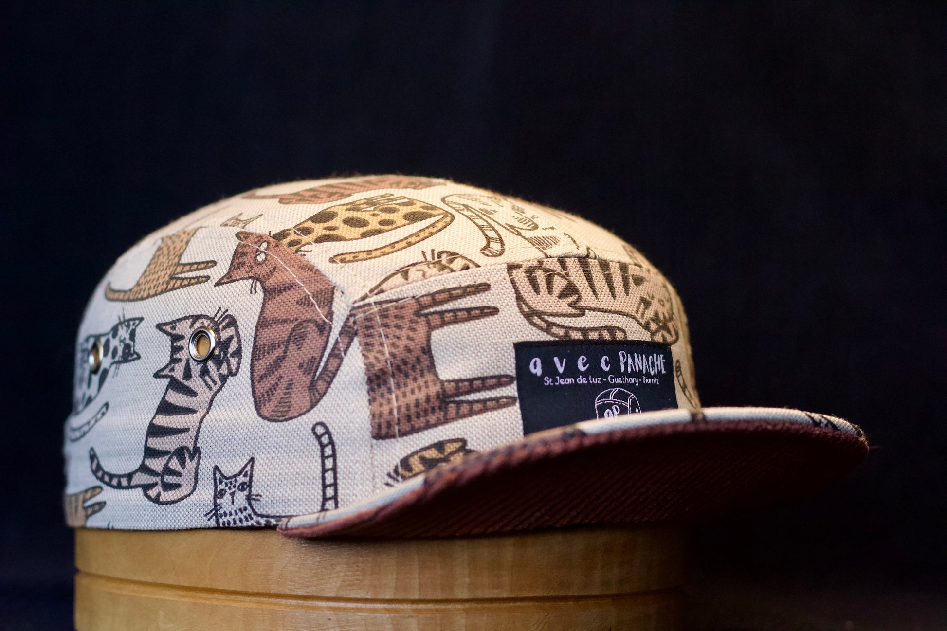 Confectionnée avec soin dans des matières robustes et confortables, cette casquette 5 panels est pensée pour t’accompagner partout : en ville, en festival, en skate ou en vadrouille. Chaque détail est travaillé pour un look original, fun et décalé, fidèle à l’esprit Avec Panache.