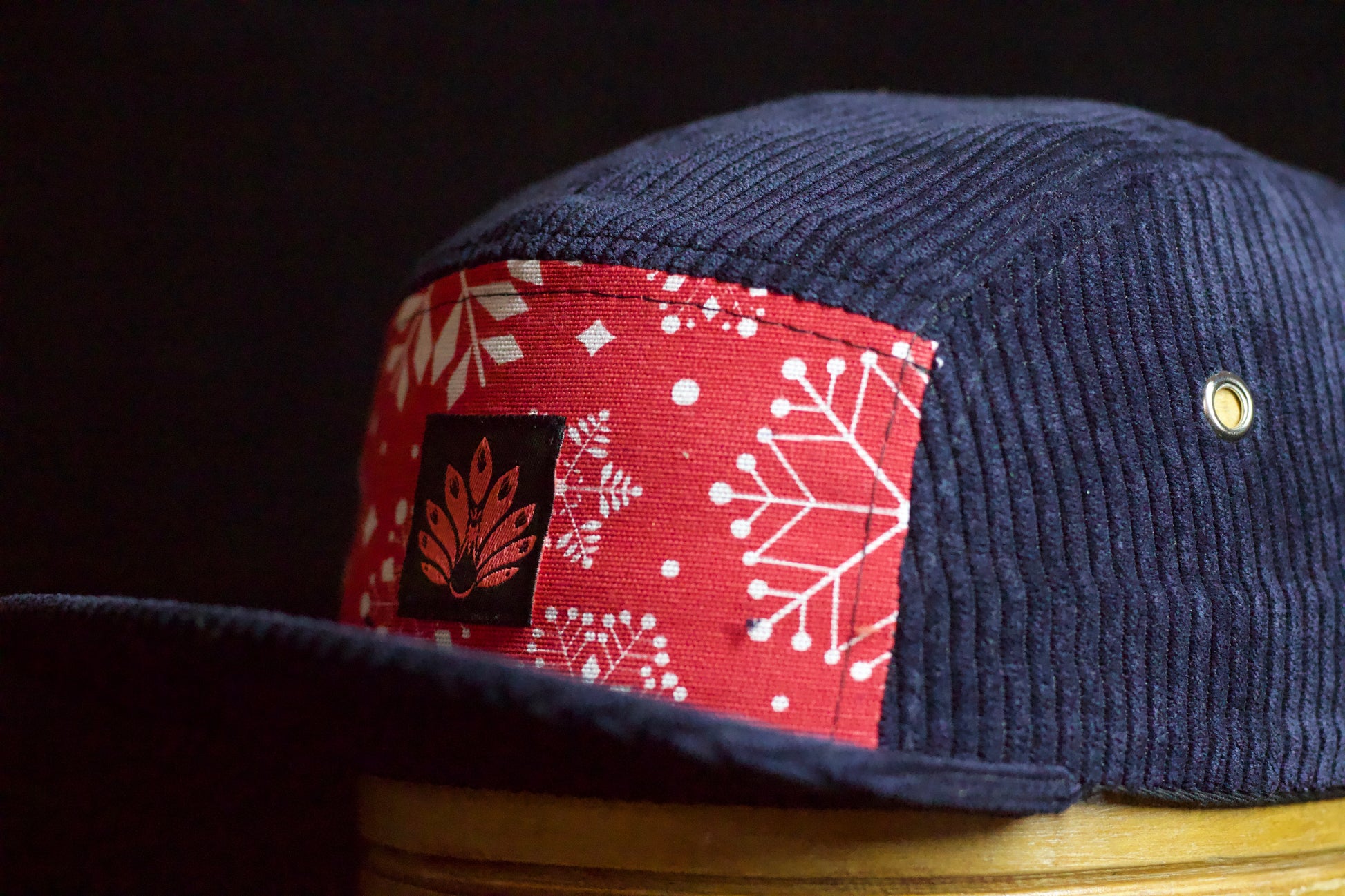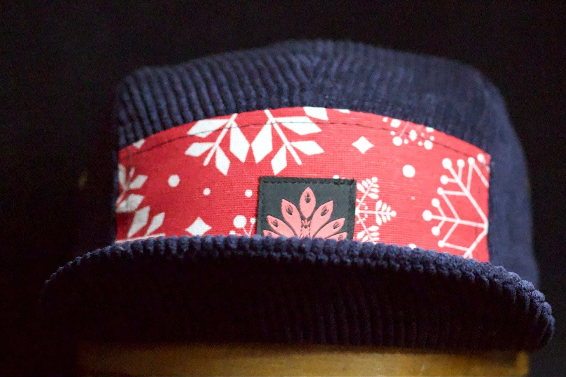 Il était une fois, dans un coin du Pôle Nord que même Google Maps n’ose pas afficher, un lutin styliste – très chic, très mystérieux, adepte des textures – a déclaré : « Noël, c’est cool… mais Noël en velours côtelé, c’est légendaire. » C’est ainsi qu’est née la Velvet Frost, une 5 panel où le velours bleu nuit rencontre un panneau avant rouge décoré de flocons façon “tempête magique en slow motion”. Une casquette tellement cosy que même les rennes veulent la porter pendant leurs pauses (mais on évite, ils ont de grandes têtes).