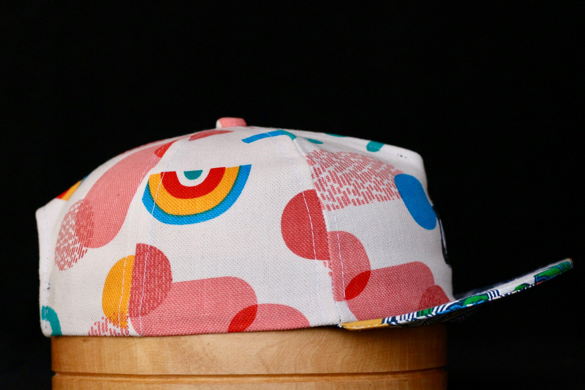 La SPACE COMMANDER IV aux formes géométriques colorées inspirées des années 80. Coupe ajustable en coton imprimé avec visière flexible contrastée. Design unique du Pays Basque alliant rétro et futurisme. Parfaite pour tous vos styles, du surf à la ville. Les motifs varient selon la découpe du tissu.